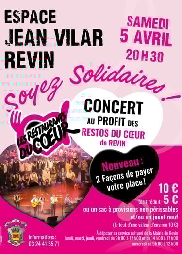 Venez nombreux à l'Espace Jean Vilar à Révin pour soutenir les Restos du Cœur et célébrer la musique !
