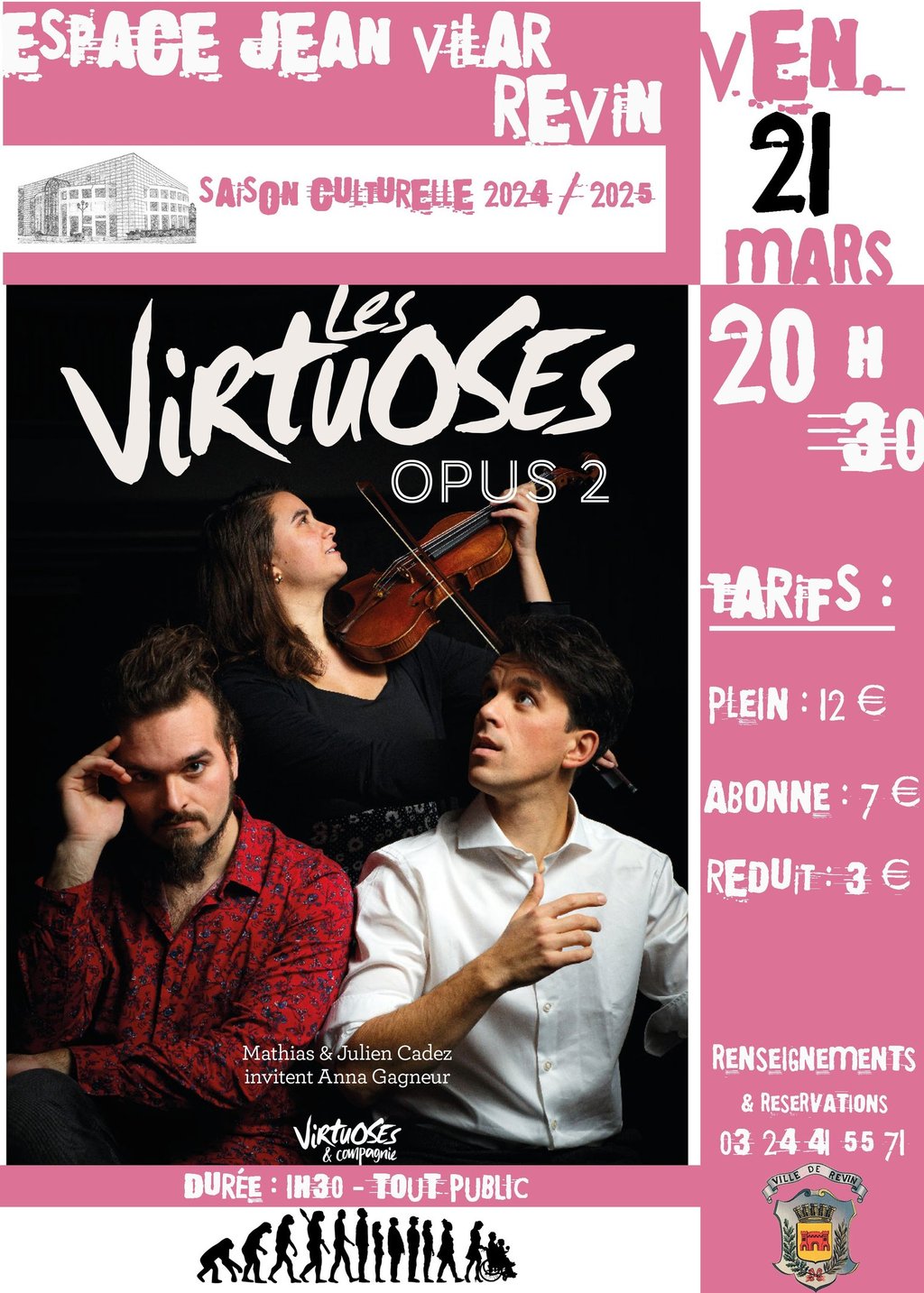 Tarifs : Plein : 12 €, Abonné : 7 €, Réduit : 3 €