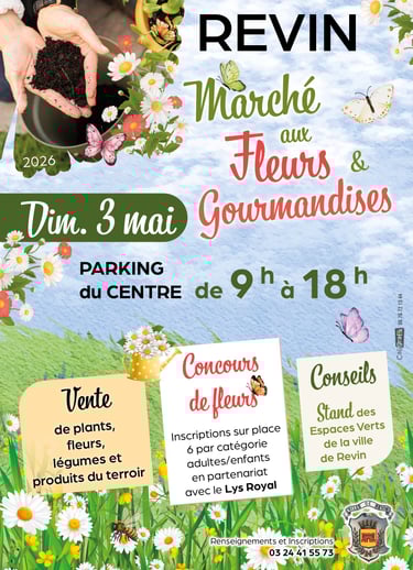 Le dimanche 3 mai, le parking du centre à Revin se transforme en véritable paradis fleuri et gourmand de 9h00 à 18h00.