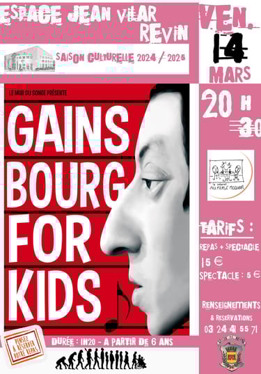 Repas + spectacle : 15 € (le repas est servi à 19h00). Réservation obligatoire au 03.24.41.55.71 avant le mardi 11 mars (dans la limite des places disponibles)